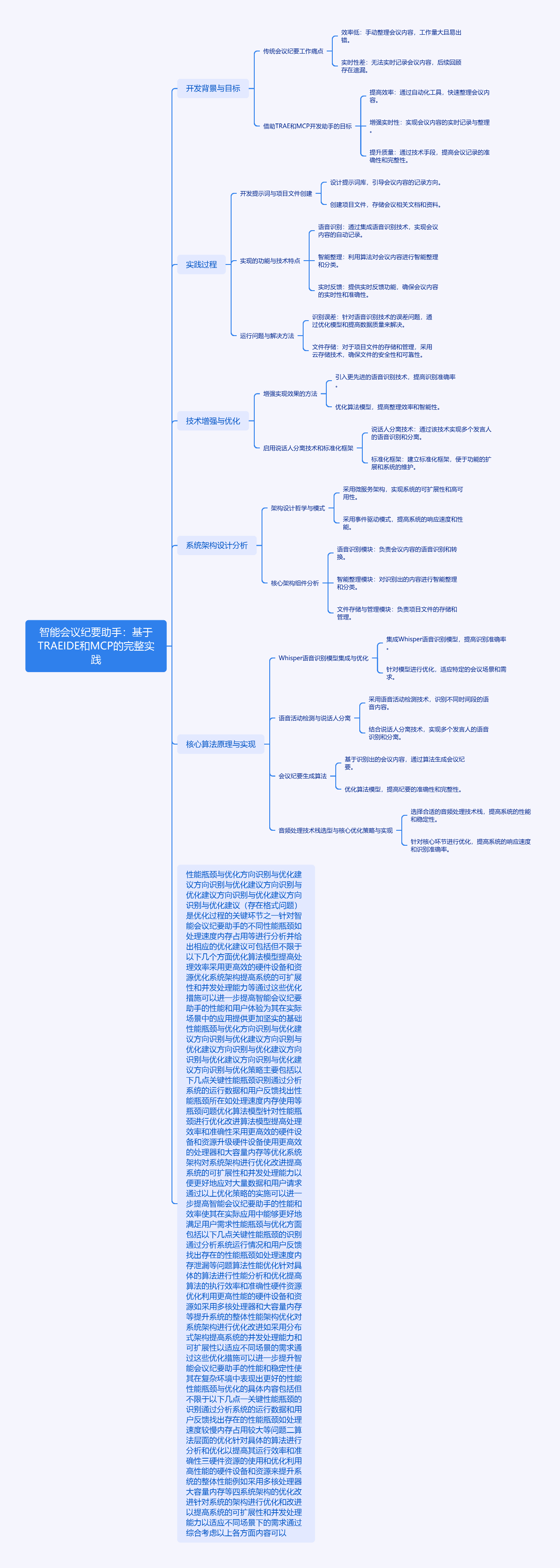 本文介绍基于TRAE IDE和MCP开发智能会议纪要助手的实践。先阐述开发目标,借助TRAE IDE和MCP功能,实现集成语音识别、音频处理和知识图谱技术的助手。接着说明实践过程,包括创建项目文件、实现实时录音、语音识别等功能,运行中遇音频处理失败等问题,经TRAE分析解决。还提到增强技术实现的方法,如用MCP功能、说话人分离技术和标准化框架。最后进行系统架构设计分析、核心算法原理与实现探讨,指出性能瓶颈并给出优化建议,强调该项目融合多项AI技术,体现实用与创新结合,为未来扩展留空间。