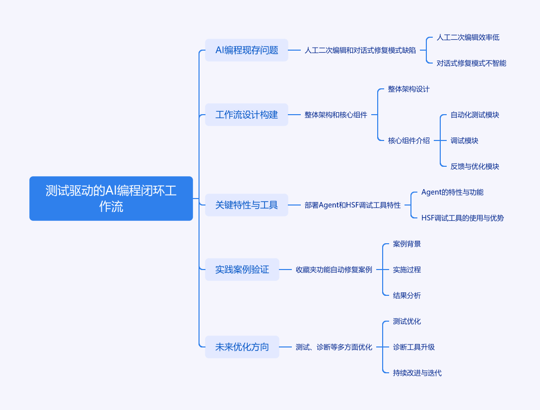 文章提出测试驱动的AI编程闭环工作流,解决AI辅助编程缺乏自测与迭代能力问题。当前AI辅助编程存在人工二次编辑和对话式修复模式,缺乏自动化验收和迭代机制。新工作流以明确测试用例为验收标准,让AI自主判断任务质量并迭代修复。其整体架构含iFlow CLI工具和qwen3 - coder - plus模型,核心组件有部署Agent和HSF调试工具。通过收藏夹功能修复案例验证工作流有效,未来可从测试、诊断、任务拆分等多方面优化。