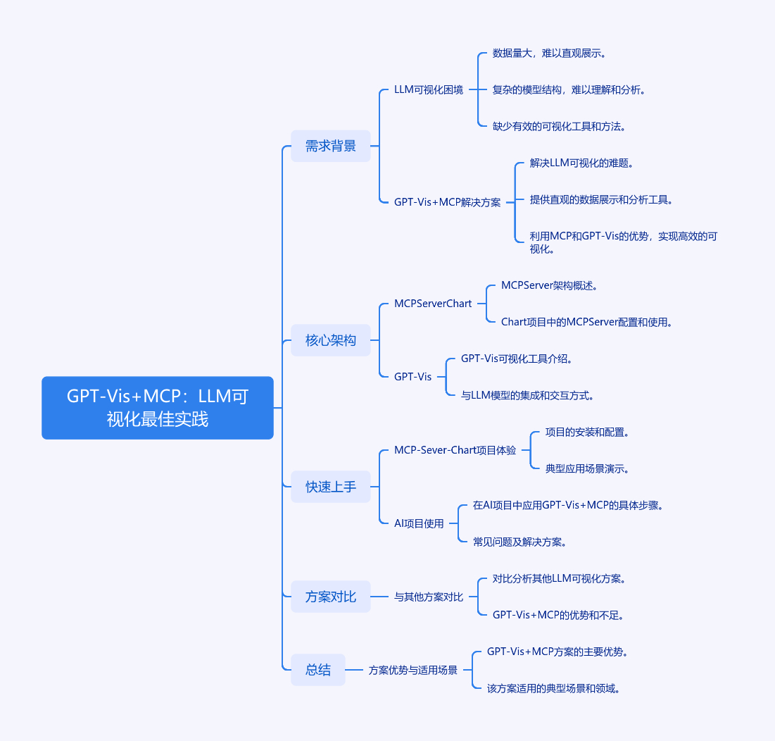 文章介绍了GPT - Vis + MCP这一LLM可视化最佳实践方案。先指出LLM可视化存在Prompt工程难、幻觉严重等困境,而GPT - Vis + MCP通过标准化协议和专业渲染引擎解决问题。接着解析核心架构,MCP Server Chart负责生成规范图表配置,GPT - Vis是专为LLM设计的Markdown可视化引擎。还给出快速上手步骤,包括在MCP - Sever - Chart项目体验和在AI项目使用的方法。与纯Prompt工程、Code Interpreter等方案对比,显示其零幻觉、类型安全等优势。最后总结该方案重新定义LLM可视化标准,适用于企业级应用。