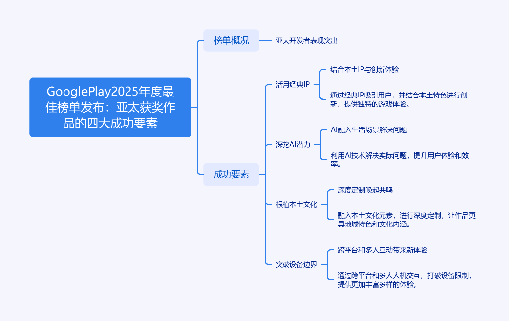 Google Play 2025 年度最佳榜单揭晓,亚太地区开发者表现亮眼,应用与游戏类近 3/4 获奖者、游戏类 86% 获奖者来自该地区。文章提炼出亚太获奖作品四大成功要素:活用经典 IP,如《Pokémon TCG Pocket》等结合本土 IP 与创新体验;深挖 AI 潜力,像《District》等将 AI 融入生活场景;根植本土文化,如《Cookie Run India》等深度定制唤起共鸣;突破设备边界,如《Garena Delta Force》等跨平台和多人互动带来新体验。这些洞察可为中国出海开发者提供助力。