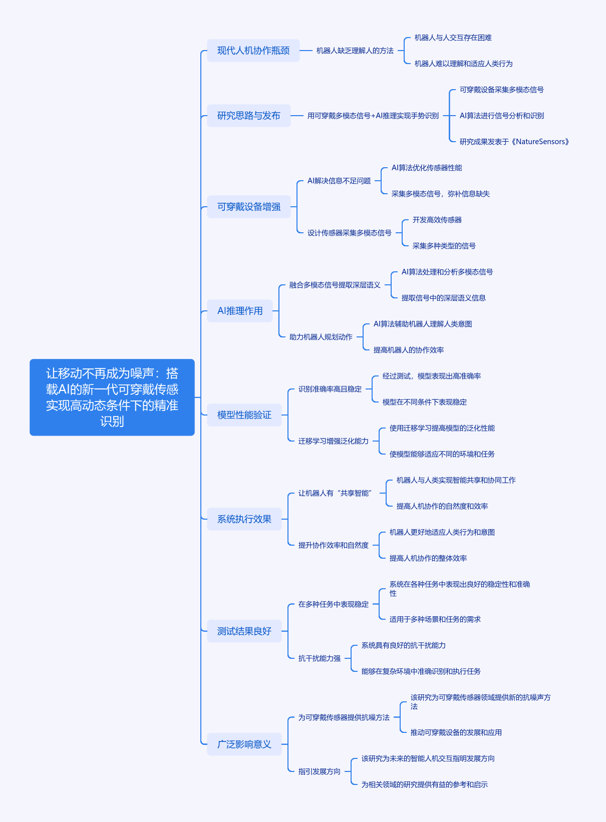 现代人机协作存在瓶颈,机器人缺乏理解人的方法。加州大学圣地亚哥分校团队提出用可穿戴多模态信号 + AI 推理实现手势识别的思路,相关研究于 2025 年 11 月 17 日发布。其设计的深度学习增强型可穿戴传感器,在信号采集层面记录动作轨迹并同步采集生理信息,推理层面用 AI 模型融合多模态信号提取深层语义,执行层面让机器人具备“共享智能”。经测试,该系统在多种实际任务中显著提升协作效率和自然度,识别准确率高且稳定,还增强了模型泛化能力,为可穿戴传感器提供了可靠抗噪方法,指引了下一代可拉伸无线穿戴设备方向。