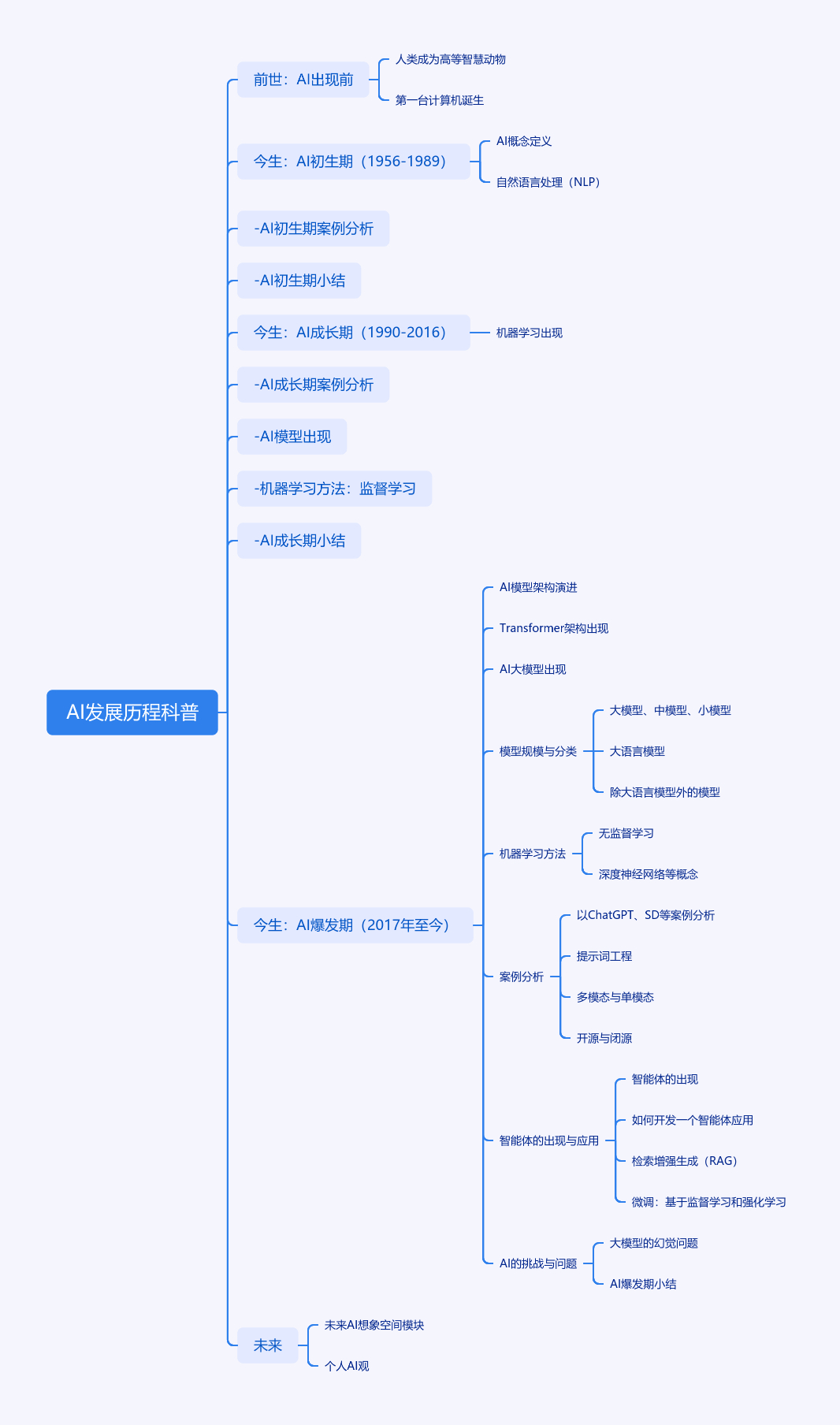 本文从历史时间线角度科普AI发展历程。AI出现前,人类因大脑独特成为高等智慧动物,后催生计算机,科学家受大脑神经网络启发有了AI雏形。AI初生期(1956 - 1989),达特茅斯会议定义AI,自然语言处理助力,但此时AI按规则执行,较死板。成长期(1990 - 2016),机器学习出现,以垃圾邮件过滤为例,AI能自己学习总结规律,形成AI模型。爆发期(2017年至今),AI模型架构不断演进,Transformer架构出现,推动大模型诞生,如GPT系列。还介绍了机器学习方法、多模态、智能体等概念,以及智能体开发和调优等内容。未来,AI将成重要伙伴,其发展得益于数据、算力、算法的成熟。