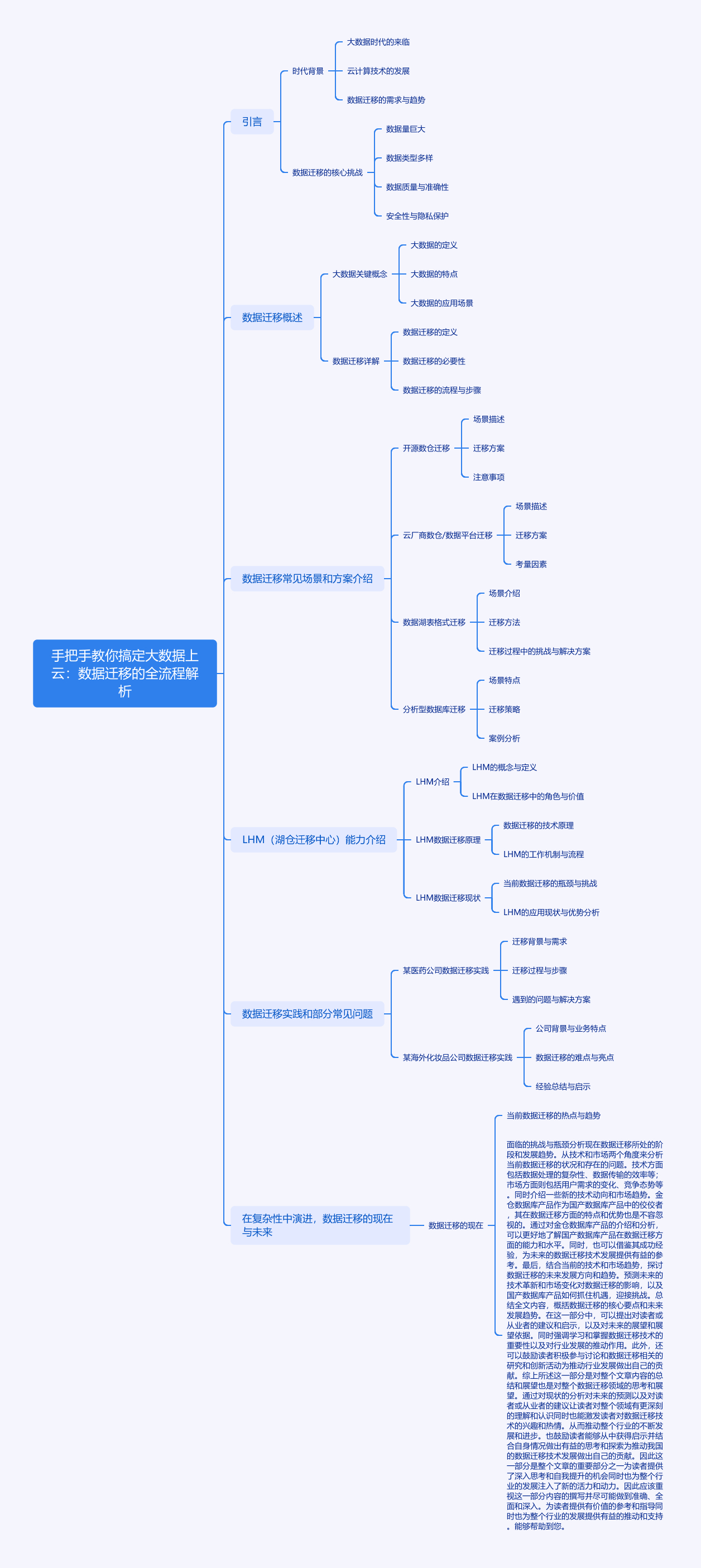 文章围绕大数据上云的数据迁移展开,先强调其重要性与挑战,如 OLAP 迁移在海量传输、系统性耦合、一致性校验方面的难题。介绍大数据关键概念,包括存储格式、湖表格式、计算引擎、数据仓库等,不同类型迁移路径和方案有别。阐述数据迁移方法,含物理与逻辑迁移,还有核心流程、策略及关注点。列举开源数仓、云厂商数仓等迁移场景及对应方案。介绍阿里云 LHM 迁移工具,含原理、架构与现状。通过医药和化妆品公司案例说明实践问题与解决办法。最后指出数据迁移正从手工作坊式向工业级服务迈进,未来将更集成、智能、自动化。