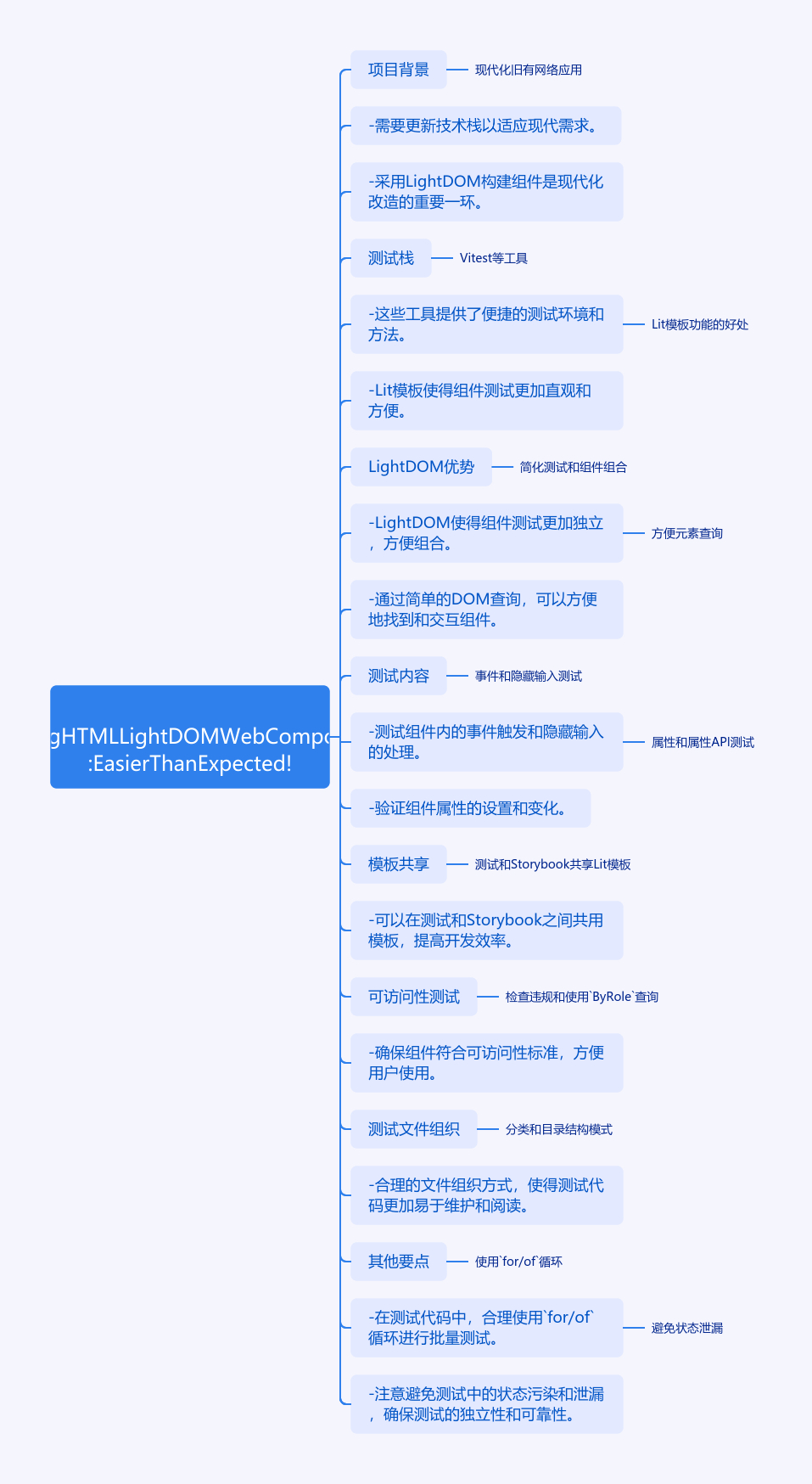 文章围绕测试 HTML Light DOM 网络组件展开。作者所在团队在现代化旧有网络应用项目中,采用 Light DOM 构建网络组件,发现测试比预想容易。测试栈包含 Vitest、Lit 的渲染函数等工具,Lit 的模板功能带来诸多好处。Light DOM 简化测试,可随时查询元素,避免 Shadow DOM 的复杂操作。还介绍了测试组件事件、隐藏输入、属性和属性 API 等方面的方法,强调测试要考虑可访问性,如使用 vitest-axe 检查违规、用 ByRole 查询等。最后提及测试文件组织、使用 for/of 循环、避免状态泄漏等测试模式和注意事项。