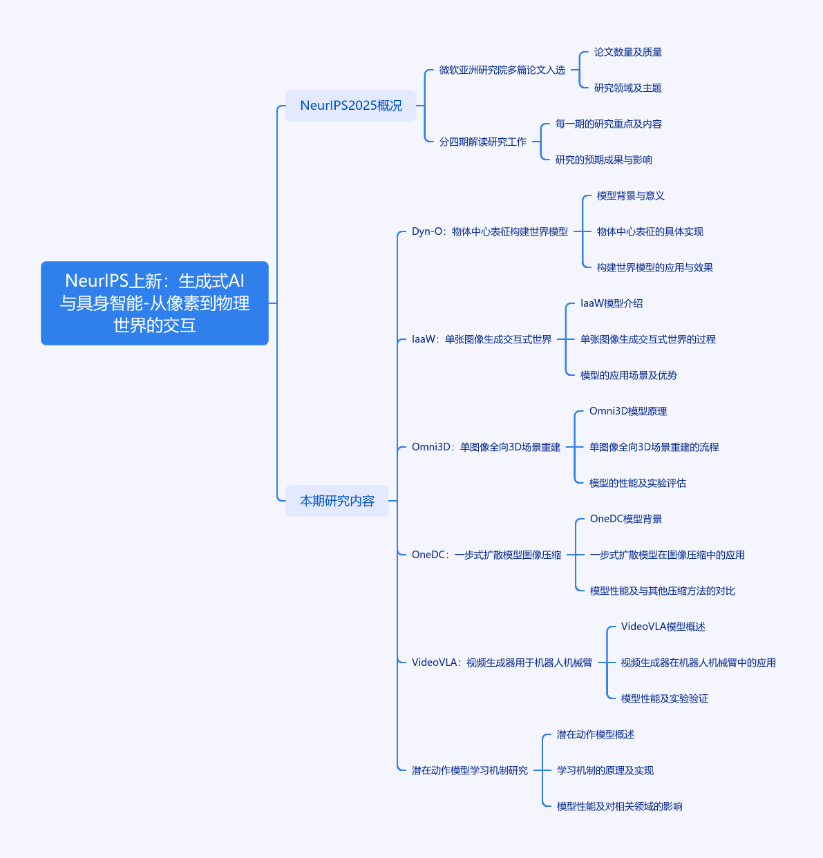 全球顶级人工智能盛会NeurIPS 2025即将开幕,微软亚洲研究院有30多篇论文入选。本文是第三期“NeurIPS上新”,聚焦生成式AI与具身智能。介绍了六项研究:Dyn - O用物体中心表征构建世界模型,在游戏中表现出色;IaaW实现单张图像生成可交互全景视频世界;Omni3D框架实现单图像全向3D场景高质量重建;OneDC基于语义蒸馏实现一步式扩散模型图像压缩;VideoVLA将视频生成模型用于机器人机械臂动作规划;研究还从理论层面探究潜在动作模型学习机制。