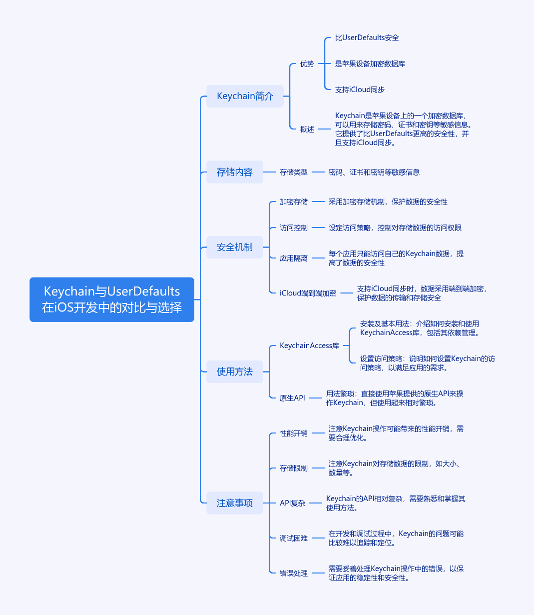 文章指出 iOS 应用存密码和 token 用 Keychain 比 UserDefaults 更安全。Keychain 是苹果的安全存储系统,采用 256 位 AES 加密,有加密存储、访问控制等安全机制,还支持 iCloud 同步。它主要存密码、证书和密钥等敏感信息。使用 KeychainAccess 库操作 Keychain 更简单,也支持设置访问策略。不想引入第三方库,也可用原生 API,但较繁琐。同时提醒使用 Keychain 要注意性能开销、存储限制、API 复杂、调试困难和错误处理等问题。