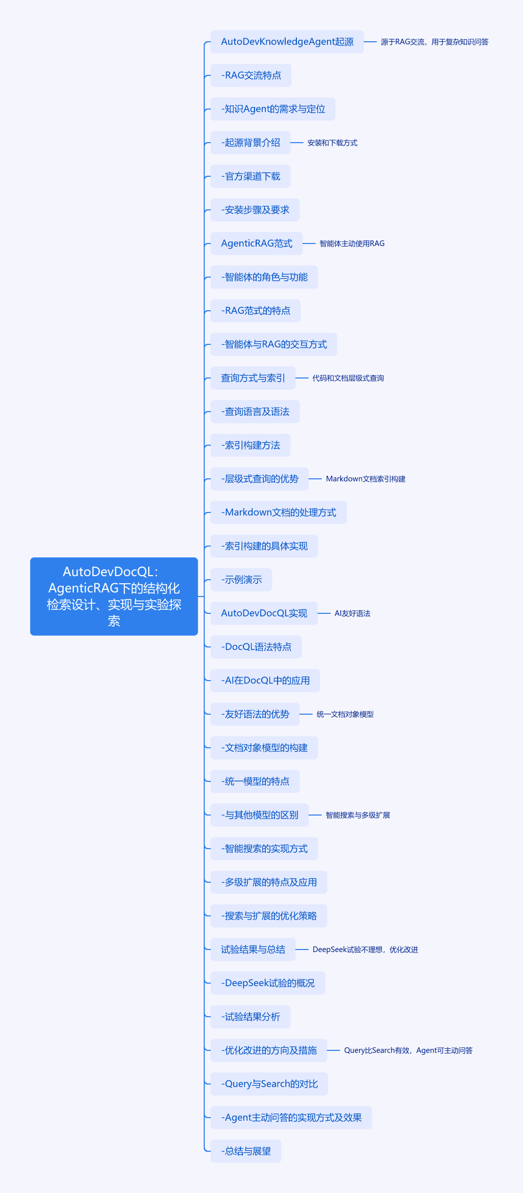 文章围绕AutoDev DocQL:Agentic RAG下的结构化检索展开。AutoDev Knowledge Agent源于RAG相关交流,旨在用于复杂知识问答。介绍安装AutoDev CLI和下载Desktop的方式。阐述Agentic RAG是让LLM智能体主动使用RAG的范式。查询方式决定索引方式,代码和文档查询都遵循层级式缩小范围。Markdown文档可通过标题层级索引,转换为HTML再生成Markdown能保留更多信息。AutoDev DocQL从AI友好语法、统一文档对象模型、智能搜索与多级扩展三方面构建。试验结果在DeepSeek上不理想,后续通过优化改进。表明在研发RAG场景中Query比Search有效,DocQL让Agent能主动完成复杂知识问答。