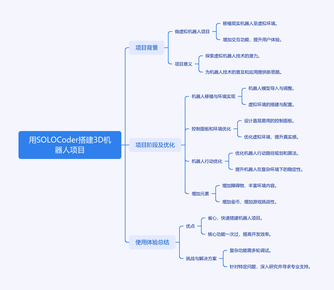 本文作者分享用 SOLO Coder 搭建 3D 机器人项目的经验。项目目标是做虚拟机器人项目,通过控制面板控制其在虚拟环境运行。先移植机器人到 Vite + React 项目,添加交互控制功能。项目分多阶段,各阶段先给出优化前提示词,再经 SOLO Coder 优化。移植机器人、控制面板和环境优化等核心功能大多一次成功,但也有小问题,如转向方向反、移动效果不明显等,沟通后能解决。添加金币和障碍物时遇麻烦,经多轮对话修复。总体而言,SOLO Coder 省心,适合快速搭建原型、实现标准功能和验证想法。