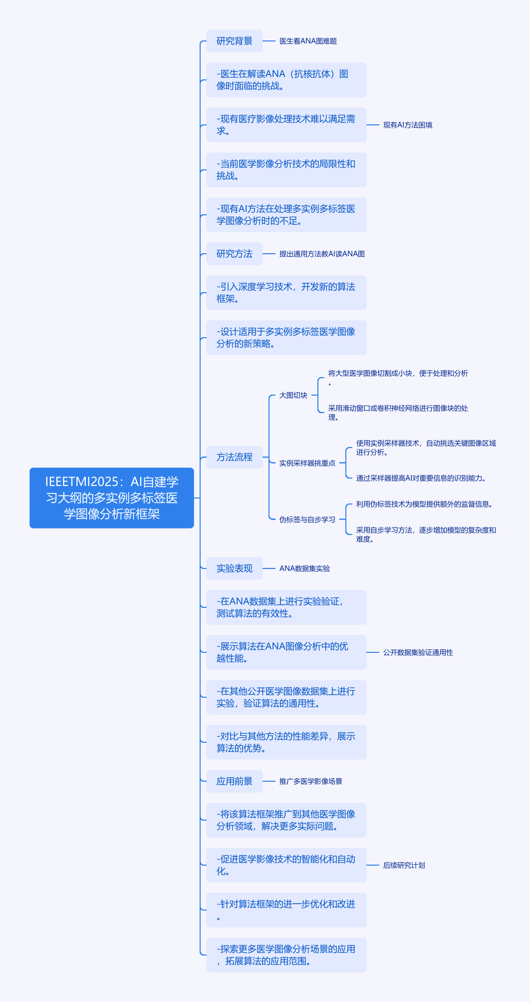 香港理工大学联合四川大学华西医院在 IEEE TMI 发表成果,提出只用“整张图结果”教 AI 读抗核抗体(ANA)免疫荧光显微图的通用方法。医生看 ANA 图因细胞多、模式复杂且标注有限而困难。该框架将大图切块,设实例采样器让 AI 挑重点,结合伪标签分配器和自步学习,按三步实现多标签判读。实验在 ANA 及多个公开数据集表现良好,能推广到其他多实例多标签医学影像任务。未来将验证泛化能力、强化可解释性并探索与临床融合。