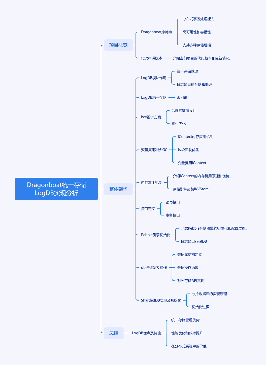 文章围绕Dragonboat统一存储LogDB实现展开。先介绍项目,它是纯Go实现的Raft库,为应用屏蔽复杂性。接着说明整体架构,LogDB模块是核心持久化存储层,管理Raft协议持久化数据。在LogDB统一存储方面,阐述索引键设计,采用不同header区分业务key空间,复用data减少GC;介绍IContext实现并发安全的内存复用;说明IKVStore封装存储引擎,支持不同后端;讲解日志条目存储DB核心管理器db及相关操作实现;还给出对外存储API实现ShardedDB。最后总结LogDB包装Pebble引擎成通用API,内存变量复用设计追求高性能,是优秀工程案例。