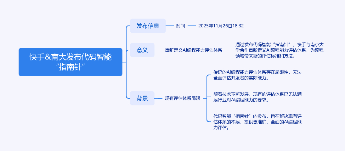 2025年11月26日18:32,快手与南大发布代码智能“指南针”,重新定义AI编程能力评估体系。开发者社区常见对代码大模型在不同编程语言和场景表现差异的吐槽,反映出现有代码大模型评估体系存在严重局限。