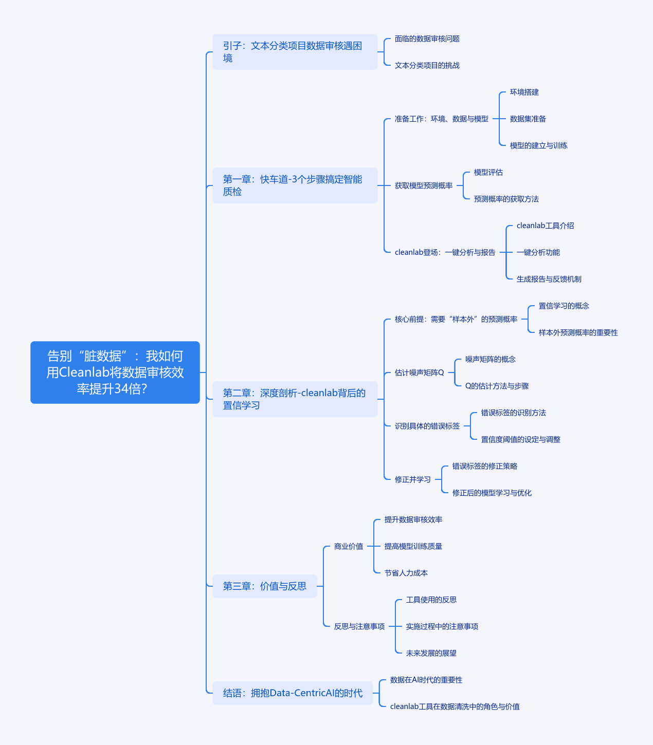 本文分享用Cleanlab提升数据审核效率的文本分类项目案例。项目构建文本分类模型识别灌水广告,数据审核遇困境,15192条可疑数据人工审核不现实。利用Cleanlab三步搞定智能质检:准备环境、数据与模型;获取模型预测概率;用Cleanlab分析报告,将待审核数据减至438条,效率提升34倍。还剖析Cleanlab背后置信学习理论,介绍其估计标签噪声、找出错误标签、修正并学习三步框架。引入Cleanlab有降本增效、提升模型性能等商业价值,使用时需注意依赖不错的模型及处理数据漂移。这是Data - Centric AI理念的成功实践。