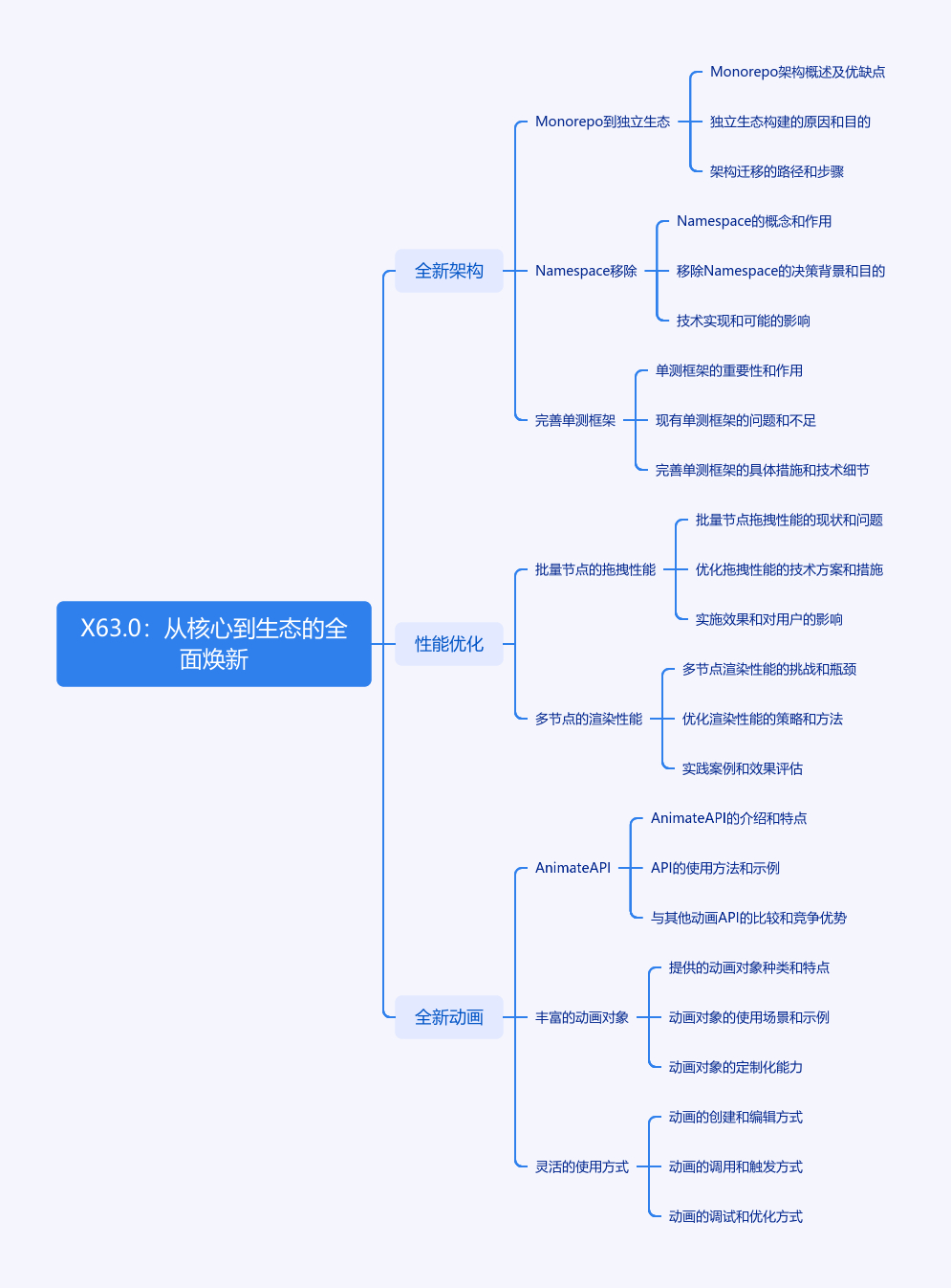 本文介绍 X6 3.0 全维度深度进化。架构上,从 Monorepo 到独立包,拆分非核心功能,新增扩展仓库;移除 namespace,优化类型系统和打包体积;完善单测框架,覆盖率超 80%。性能方面,优化批量节点拖拽性能,解决卡顿问题;提升多节点渲染性能,减轻内存和渲染压力。动画上,新增 Animate API,支持精准控制、灵活关键帧和丰富配置,可应用于任意数据,且使用方式简化,有指令式、配置式和自定义动画 Shape 三种。