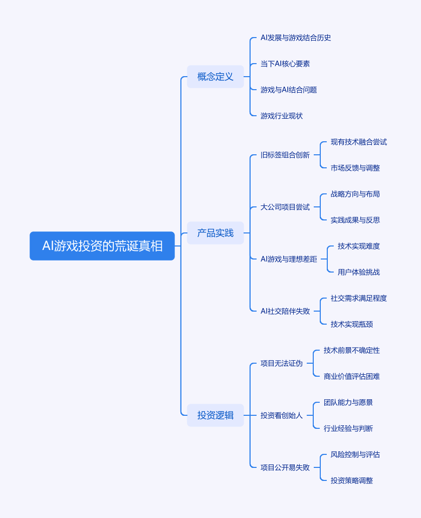 本文围绕“AI游戏”展开探讨。先明确“AI游戏”概念,AI包含自然语言、编程、多模态模型,当前AI已融入游戏生产管线,但大家期待玩法创新的“AI native game”。如今游戏行业规模大,走向极致工业化或创意化,是成熟商品与服务。当前创业公司多从沙盒等旧标签组合创新,如米哈游、元象等公司进行尝试,但AI游戏距理想状态差距大,AI社交陪伴项目基本失败。投资方面,短期内项目无法证伪,投资人主要看创始人背景和能力,很多项目公开后“见光死”,市场由供需而非对错决定。