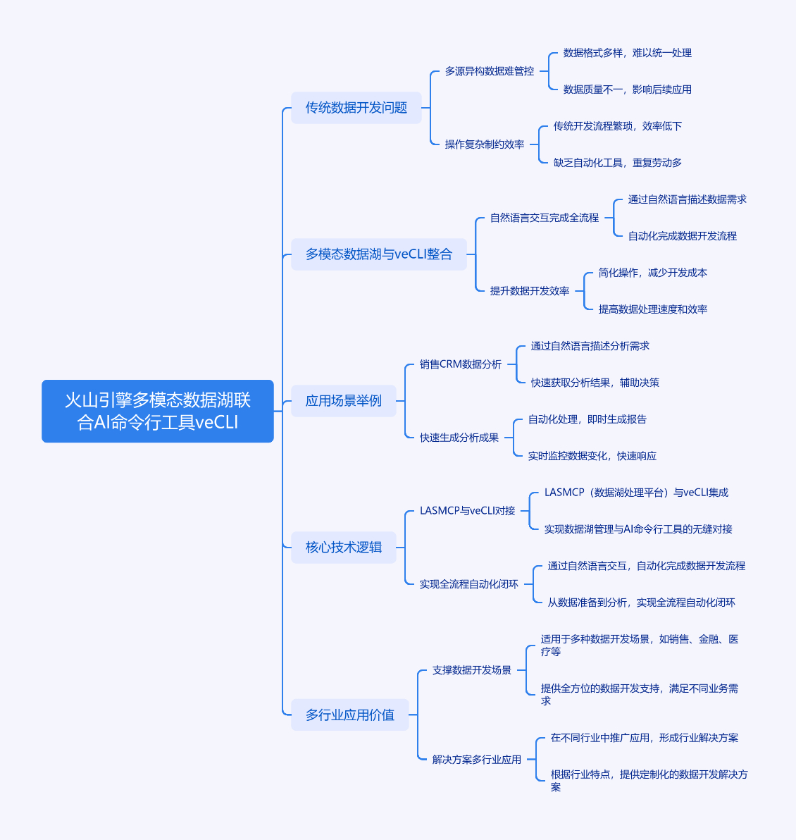 传统数据开发存在多源异构数据难管控、操作复杂等问题,AI时代推动其向自动化、智能化转型。近期,火山引擎多模态数据湖与veCLI深度整合,开发者用自然语言交互就能完成数据开发全流程,提升效率。如‘销售CRM数据分析’场景,下达指令后几分钟就能生成分析成果,无需编写代码。其核心技术逻辑是LAS MCP与veCLI对接,实现全流程自动化闭环。此外,该多模态数据湖不仅支撑数据开发,还在多行业发挥价值,解决方案已在智能驾驶等行业应用,如帮某车企降低存储成本、提升管理效率。