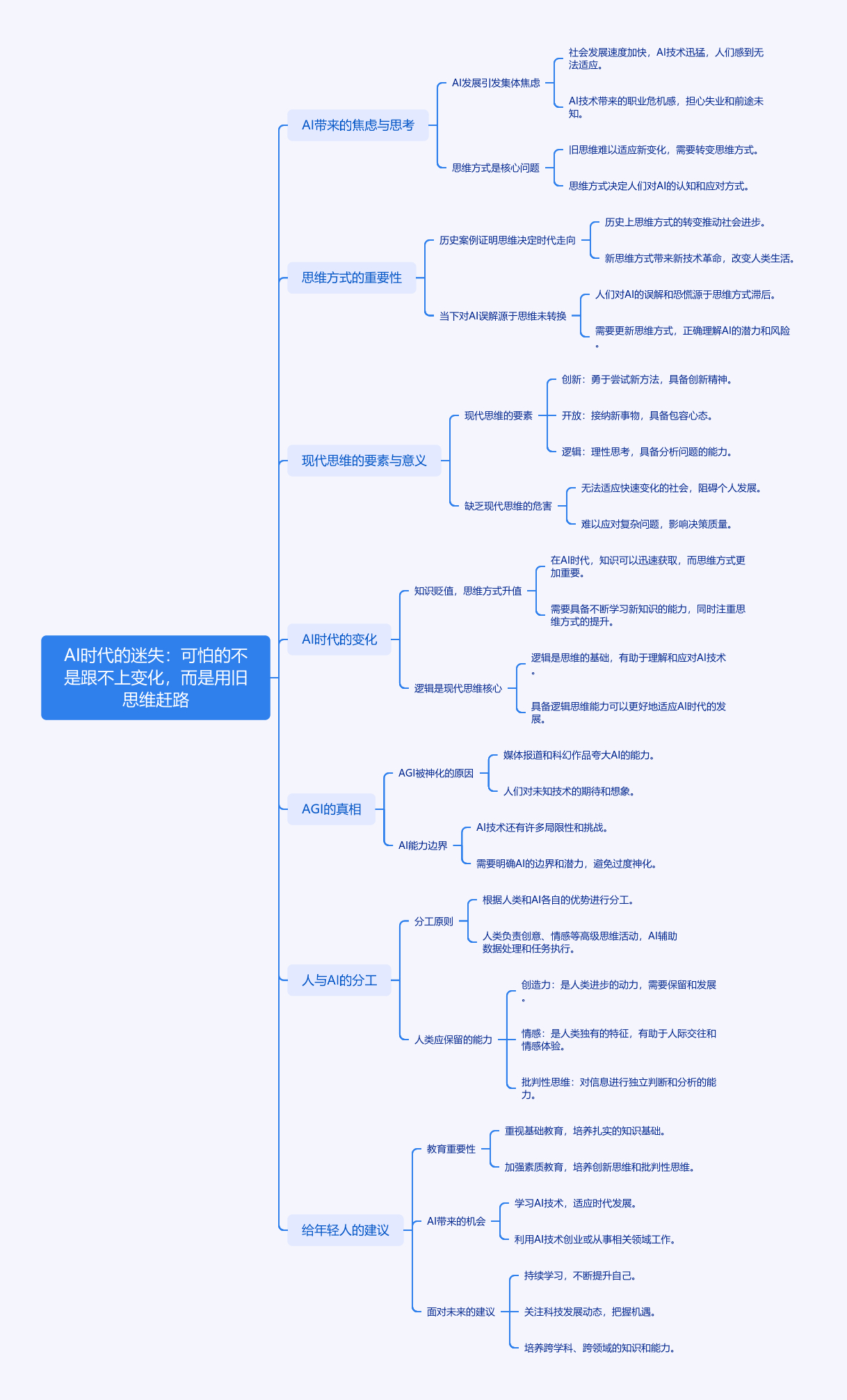 文章围绕AI时代展开探讨。指出AI发展使人类面临人与智能边界重划的节点,引发集体焦虑。强调思维方式才是决定时代走向的关键,如欧洲因思维现代化诞生现代科学,清朝中国因思维未变在近代被击败。当下人们对AI存在恐慌、误解,根源是未完成“现代化思维”转换。缺乏现代思维易陷入认知混乱,面对AI易夸大其能力。现代思维应具备证据优先、逻辑推理等要素。知识在AI时代贬值,思维方式升值,逻辑是现代思维核心。AGI被资本神化,人类应将“干活”部分交给AI,保留学习和思考能力。最后给年轻人建议,要注重过程、接受不确定性、重建独立思考能力,发展个性化能力。