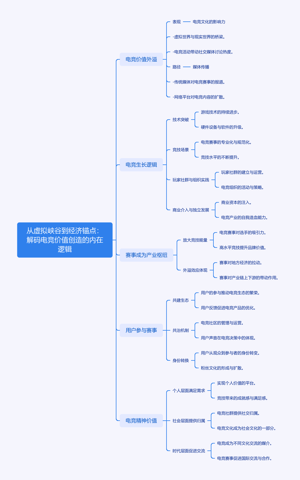本文以王者荣耀职业联赛总决赛为例,指出电竞价值已外溢至社会经济领域,有技术应用、激活消费、促进文化交流三条外溢路径。接着阐述其生长逻辑,从技术突破使竞技场景成为可能,到玩家社群让竞技演化为组织实践,再到商业介入使其迈向独立。赛事成为产业枢纽,放大玩家竞技能量,且具有外溢效应。用户通过共建生态、共治机制和身份转换深度参与赛事。电竞精神为年轻一代提供价值认同,满足个人、社会、时代层面需求,最终成为激发数字经济增长的新锚点。