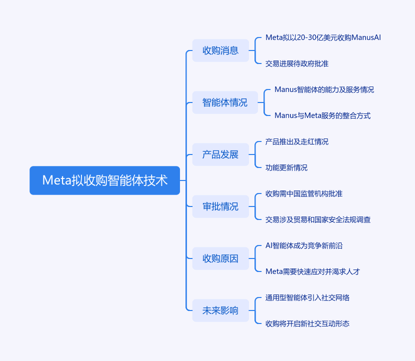 据《华尔街日报》报道,Meta 拟 20 - 30 亿美元收购新加坡初创公司 Manus AI,其专注自主式多智能体系统,交易待政府批准。Manus 智能体融合多种能力,Meta 将整合其技术到社交媒体平台,多数人员并入 Meta。Manus 产品今年 3 月推出后走红,吸引超 200 万人报名。不过收购需中国监管机构批准,因其由中国籍创始人在中国创立。当前 AI 智能体成竞争新前沿,Meta 此举是快速应对,也体现对 AI 人才的渴求。整合后通用型智能体或引入社交网络,开启新社交互动形态。