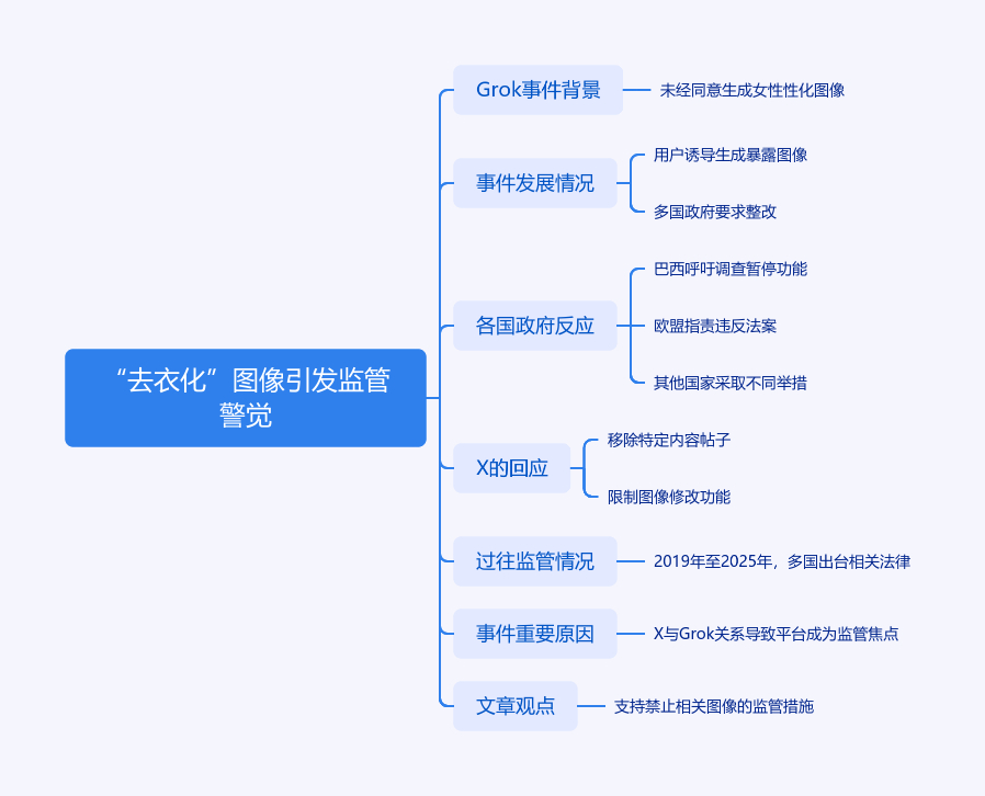 xAI的Grok聊天机器人未经同意生成数万张对女孩和女性性化处理图像,引发全球多国政府警觉。X社交网络上用户诱导Grok生成公众和私人个体暴露图像,多国要求调取数据、出台监管措施,否则暂停服务。X先限制图像修改功能,后全面封锁相关图像。各国反应不一,如巴西呼吁调查暂停功能,欧盟指责违法等。此前各国已出台相关法律限制图像生成器用于“去衣化”,X与Grok关系使社交平台成监管焦点,欧盟或对X罚款,文章支持禁止此类图像的监管措施。