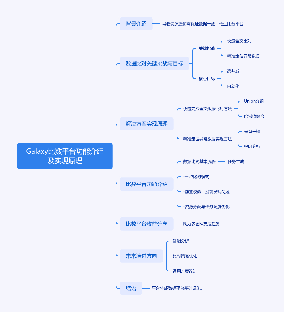 得物计算和存储资源迁移时,需确保数据一致性,比数平台应运而生。该平台要解决快速完成全文数据比对和精准定位异常数据两大挑战,目标是实现高并发、自动化、智能差异定位等。其采用先Union再分组、哈希值聚合结合的方法快速比对,通过自动探查主键、多方式找主键及根因分析精准定位异常。平台有三种比对模式,具备前置校验、资源分配与任务调度优化功能。已安全运行500+天,助力多团队完成任务,未来将在智能分析、比对策略、通用方案上改进。