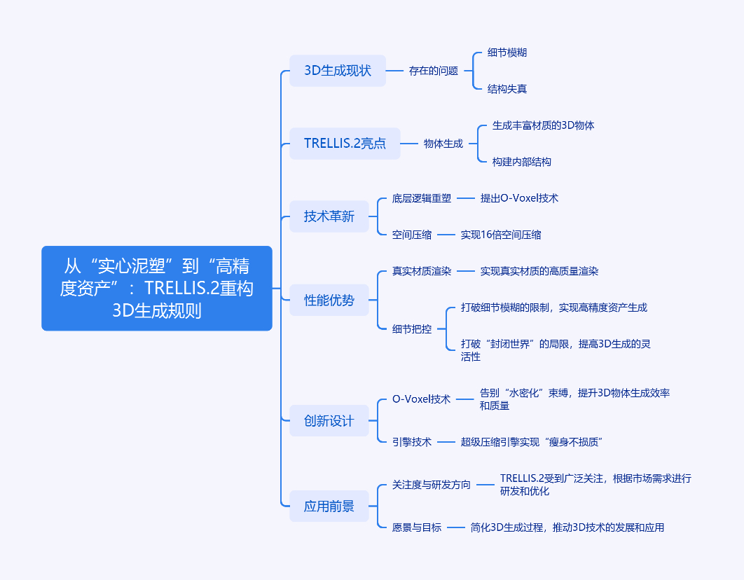 本文介绍微软亚洲研究院发布的 TRELLIS.2 模型。当前 3D 生成存在细节模糊等问题,TRELLIS.2 能生成丰富材质 3D 物体,构建内部几何结构,使 3D 资产迈入“高保真”阶段。它重塑底层技术逻辑,提出非场新表达 O - Voxel,实现 16 倍空间压缩,提升生成效率。其优势体现在实现基于物理的真实材质渲染、打破“封闭世界”魔咒、把控极致细节。创新包括用 O - Voxel 告别“水密化”束缚,用超级压缩引擎“瘦身不损质”。自开源后受广泛关注,研究院正针对需求研发,愿景是让 3D 生成更简单。