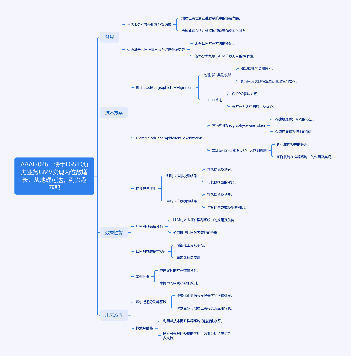 文章围绕快手生活服务算法团队的LGSID展开。生活服务推荐受地理位置强约束,传统推荐方法在近场分发场景表现受限。为此团队提出LGSID,相关成果被AAAI 2026接收且已全量上线,助力业务GMV和订单增长超10%。LGSID包含RL - based Geographic LLM Alignment和Hierarchical Geographic Item Tokenization模块,前者通过地理感知奖励模型和G - DPO算法,让LLM有效学习地理位置信息;后者提出HGIT方案进行层次化量化。实验显示LGSID在判别式和生成式推荐模型中性能突出,能提升模型地理感知能力,未来团队将继续探索AI赋能下一代推荐系统。