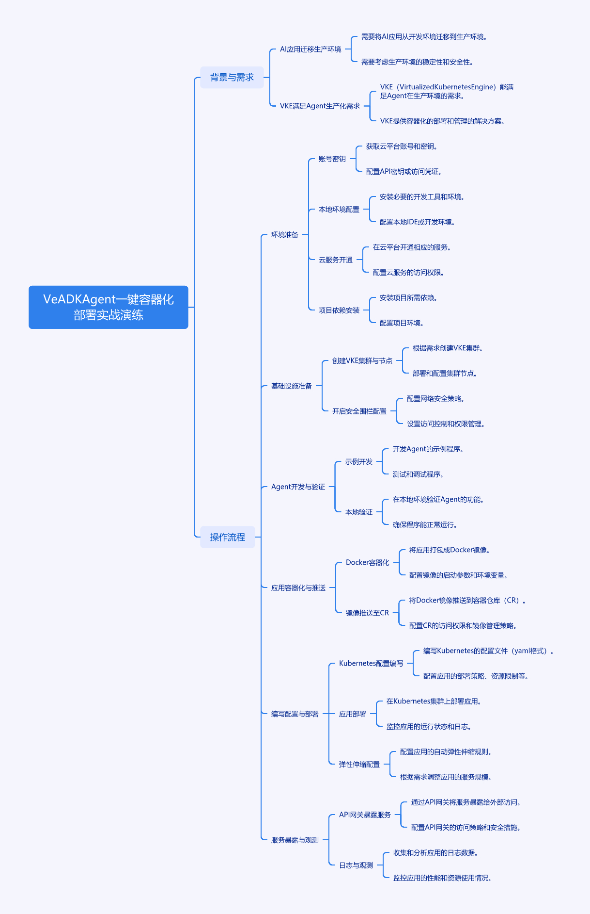 本文介绍将 VeADK Agent 部署至火山引擎容器服务(VKE)的标准化路径。先阐述背景,AI 应用迁移至生产环境,VKE 可提供安全可靠、弹性伸缩等环境。操作流程含创建 VKE 集群及节点池、用 IRSA 连接云服务 API、容器化应用并推送镜像等。环境准备需火山引擎账号密钥、配置本地开发环境、开通云服务、安装项目依赖。接着介绍创建 VKE 集群与节点、开启安全围栏配置、Agent 开发与本地验证、应用容器化与镜像推送、编写 Kubernetes 配置、部署应用、配置弹性伸缩、通过 API 网关暴露服务、日志与观测等步骤。企业级用户部署至 VKE 可统一云原生技术栈,带来多维度收益。