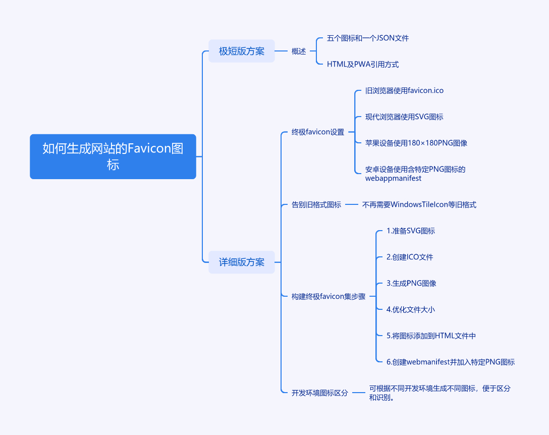 文章指出当前前端开发者为显示网站图标需处理20多个静态PNG文件,提出更优方案。极简版只需五个图标和一个JSON文件,包括HTML中引用的favicon.ico、icon.svg、apple-touch-icon.png,PWA需添加manifest.webmanifest。详细版介绍终极favicon设置,含适用于旧浏览器的favicon.ico、现代浏览器的SVG图标、苹果设备的180×180 PNG图像、安卓设备带192×192和512×512 PNG图标的web app manifest。还介绍构建此图标集的六个步骤,涵盖准备SVG、创建ICO文件、生成PNG图像、优化文件、添加到HTML、创建web manifest,最后提及开发环境可使用不同图标区分。