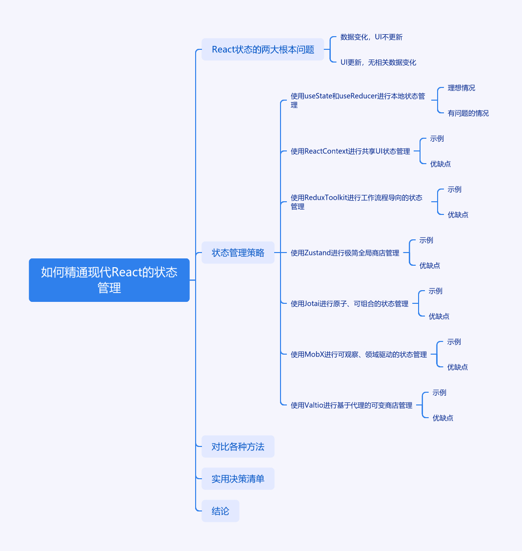 文章围绕现代 React 状态管理展开,指出状态管理是把双刃剑,随应用增长会变得复杂,且无完美工具,各方法有不同权衡。介绍了七种策略:用 useState 和 useReducer 管理局部状态;用 React Context 解决共享 UI 状态的 prop 钻取问题;Redux Toolkit 适用于工作流导向的状态;Zustand 提供轻量级全局存储;Jotai 将状态建模为原子;MobX 用于可观察、领域驱动的状态;Valtio 适用于基于代理的可变存储。还对比了各方法,并给出选择策略的实用清单,强调应根据状态实际情况选择工具。
