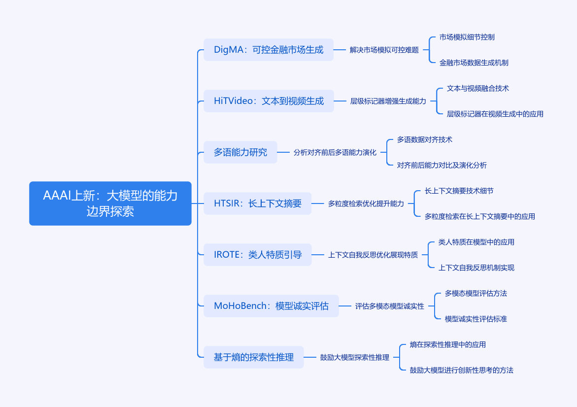 第40届AAAI人工智能会议在新加坡举行,微软亚洲研究院有多篇论文入选,涵盖多领域。DigMA框架解决金融市场模拟可控难题;HiTVideo层级标记器增强大语言模型文本到视频生成能力;分析对齐前后模型多语能力演化;HTSIR框架提升长上下文摘要能力;IROTE框架引导大模型展现类人特质;MoHoBench评估多模态大模型诚实性;基于熵的方法鼓励大模型探索性推理。