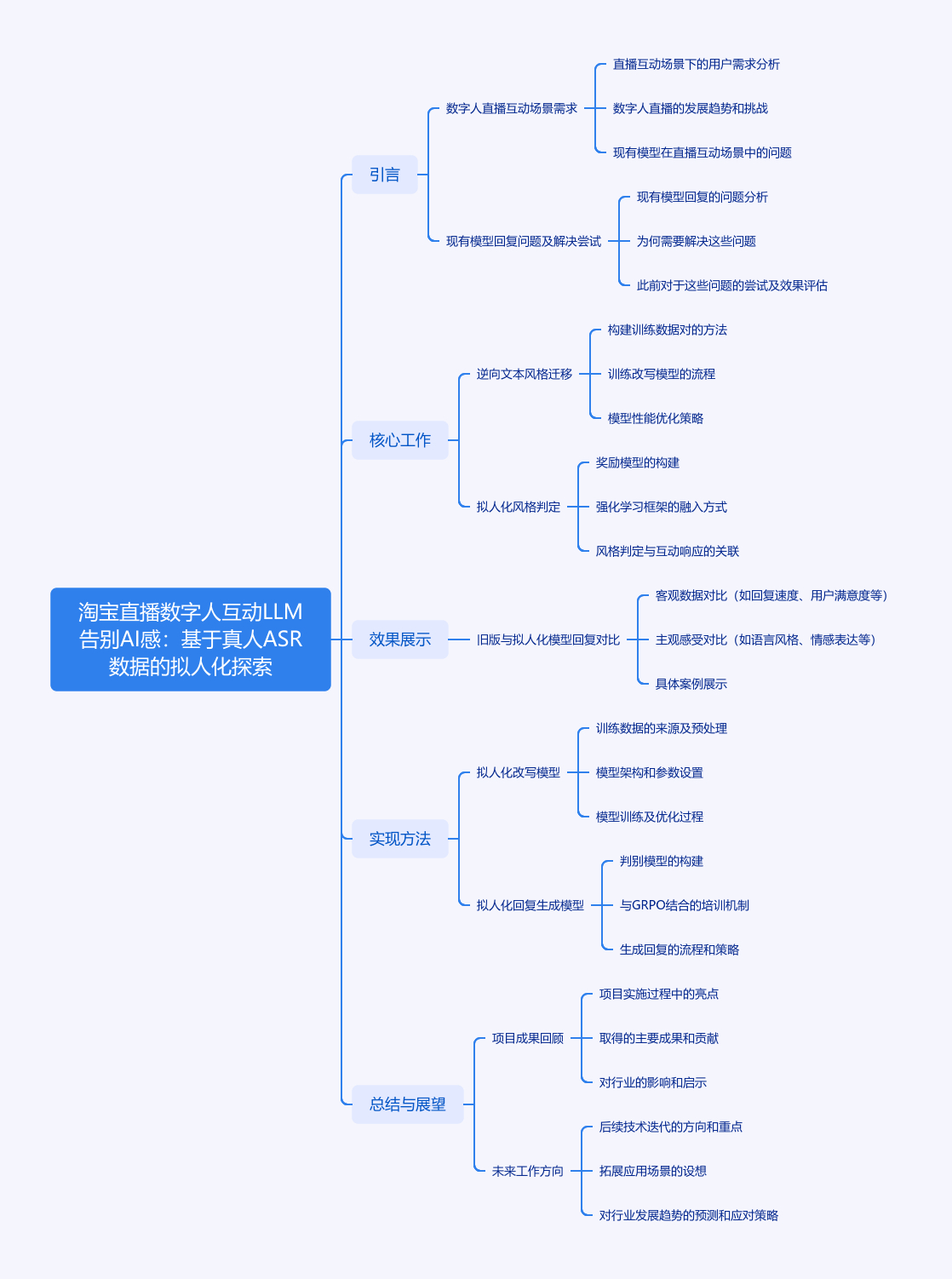 文章针对数字人直播中LLM回复“AI感强、书面化”问题,提出基于真人直播ASR数据的拟人化训练方法。先构建〈AI回复, 拟人化回复〉数据对,训练拟人化改写模型;再训练拟人化奖励模型,融入强化学习框架使生成模型直接输出拟人化回复。实验表明,该方法在保持准确性和帮助性的同时,显著提升语音交互真实感与用户体验。未来将细化拟人化打分机制、考虑SFT后再RL、解决长文本问题及探究文本风格迁移方法。