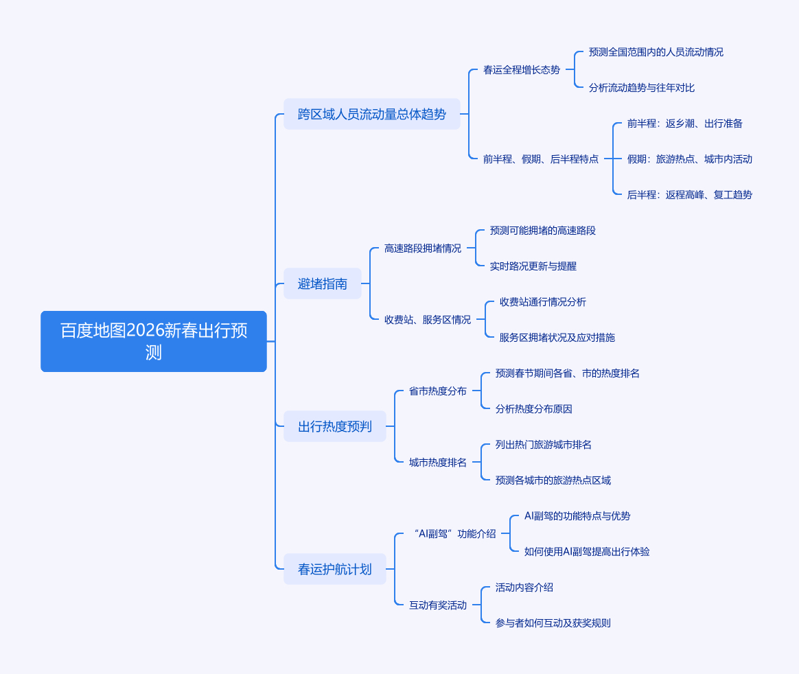 2026年春运如期而至,百度地图联合多方发布《2026新春出行预测报告》。春运40天跨区域人员流动量持续增长,前半程客流稳步到快速攀升,春节假期除夕、初一流动量降低,初二至初七高位运行,后半程正月初六和十五左右有返程高峰。部分高速路段、收费站、服务区将较拥堵,新能源服务区充电需求上升。地域上,广东是最大人口输出和迁入地,河南、四川是返乡热门地,重庆超越北上广深成最受欢迎迁入城市。百度地图“春运护航计划”启动,“AI副驾”升级,还开展互动有奖活动。