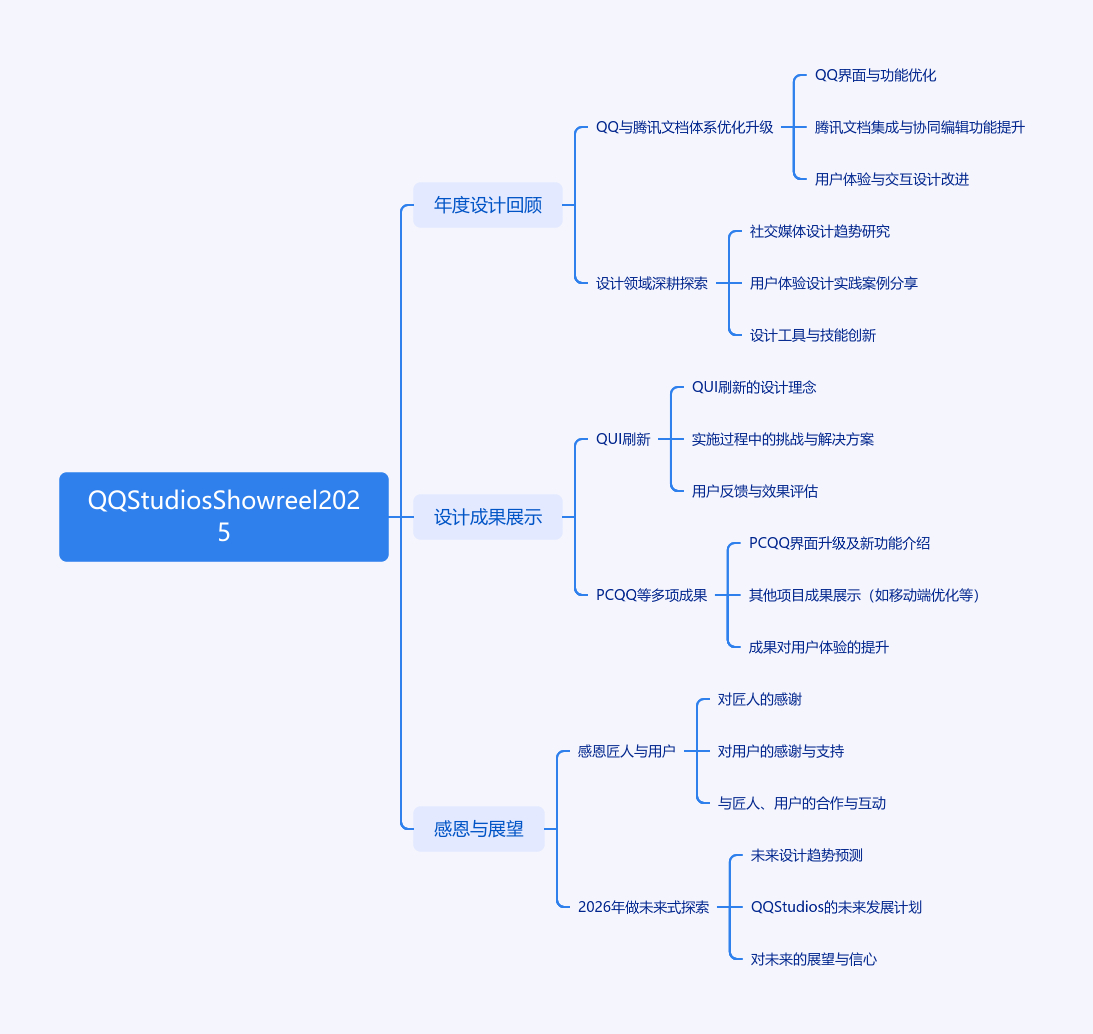 2026年1月27日发布的QQ - Studios Showreel 2025回顾了2025年QQ与腾讯文档体系的设计成果。这一年两大体系不断优化升级,团队以‘It iS Ultra eXperience 这就是极致体验’为初心,在社交用户体验、AI、品牌等设计领域深耕,探索打造极致用户价值与未来可行性。展示了QUI刷新、PCQQ、空间改版等多项设计成果,最后感恩匠人努力与用户支持,预告2026年将做更多未来式探索。