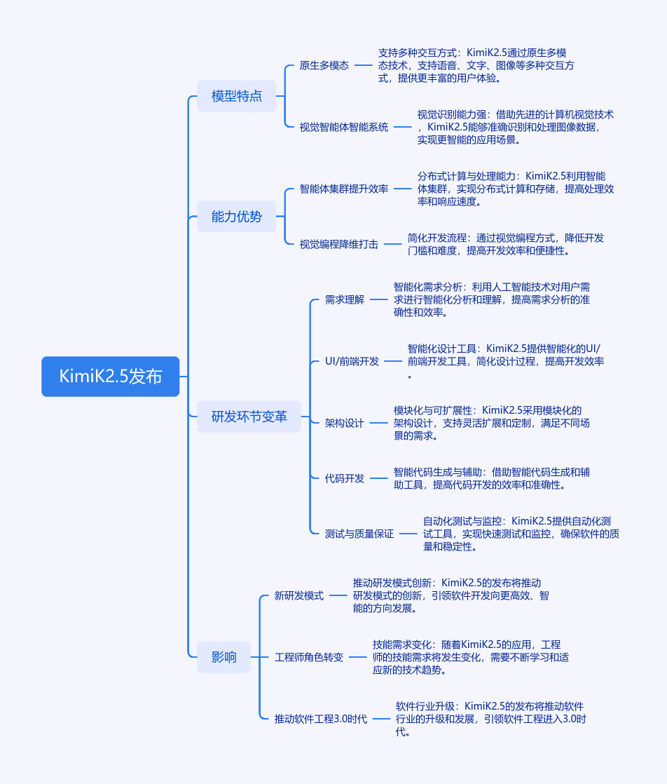 2026年1月27日,Kimi K2.5正式发布并开源,它是基于1.5T混合视觉与文本Token预训练的原生多模态模型。其构建的Visual Agentic Intelligence系统,能动态创建并指挥智能体“工作团队”并行工作,效率大幅提升。K2.5还实现了从“看图说话”到“看图编程”的跨越,能生成完整可用代码并进行视觉调试。在软件研发各环节,K2.5带来变革,如需求理解更高效、UI/前端开发变创意活等。它是系统性革命,已在实际场景验证,也将改变工程师角色,推动软件工程进入3.0时代。
