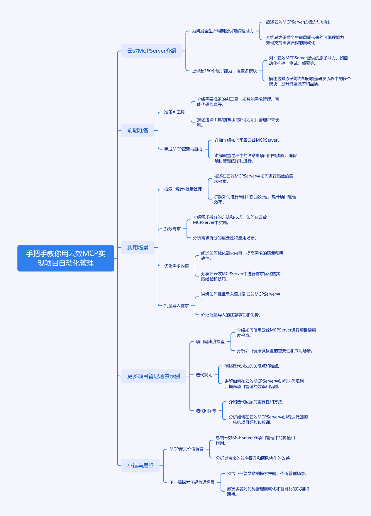 云效 MCP Server 为研发提供统一可编程能力,覆盖组织、代码、项目等多模块。文章手把手教利用其实现项目自动化管理:先准备 AI 工具并完成 MCP 配置与自检;接着介绍实用场景,如检索统计工作项、拆分需求、优化需求内容、批量导入需求;还给出更多项目管理场景示例,像项目健康度检查、迭代规划等。最后指出 MCP 带来执行指令化、经验模板化、精力聚焦化价值转变,下一篇将探索代码管理场景。