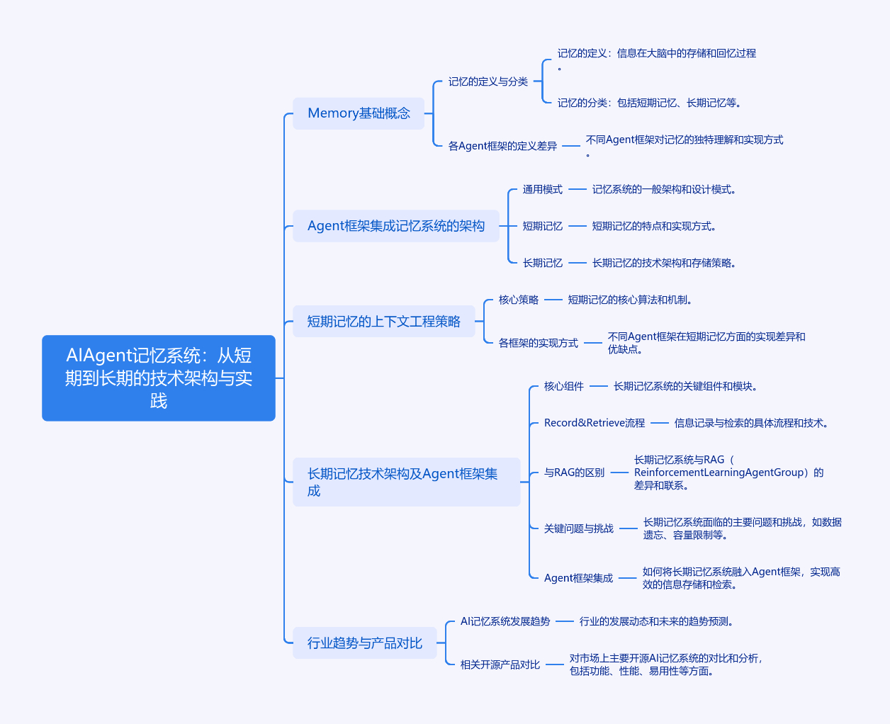 文章围绕AI Agent记忆系统展开,介绍其基础概念、架构、工程策略及技术挑战。记忆分为会话级和跨会话级,对应短期和长期记忆。Agent框架集成记忆有通用模式,短期记忆注重上下文工程,含缩减、卸载、隔离策略;长期记忆需完整架构,包括信息提取和检索组件,存在准确性、安全隐私和多模态支持等挑战。当前行业呈现从研究向生产、从单一向综合发展趋势,有记忆即服务等技术趋势,主流技术路径为外部记忆增强和参数化记忆,mem0在长期记忆产品中占领先地位。