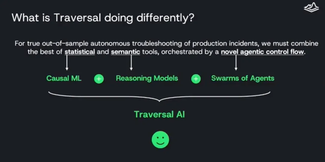 文章围绕Traversal展开,它是一家专注企业运维的初创公司。代码运维是痛点,AI Coding发展加剧了难度,传统工具难以解决。Traversal以因果推断构建SRE Agent,能定位问题并自动化处理。其优势明显,行业痛点明确,技术壁垒高,团队背景好且获资本加持。工作流分离线和在线阶段,可主动监控。应用场景广泛,技术基于因果推理与仿真模拟。商业模式为混合式、以结果为核心的定价模式。不过也面临风险,如因果机器学习有效性存疑、竞争大、隐私合规门槛高。团队由高校教授和证券交易员组成。在AI SRE市场,它与传统巨头和其他工具竞争,各有优劣。