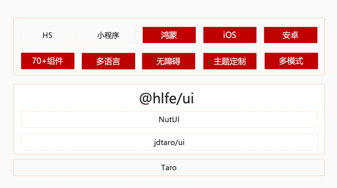 在“京东订单鸿蒙 - 回跨iOS/安卓”项目中,NutUI组件库助力实现一码五端。2024 - 2025年,NutUI做了鸿蒙和iOS/安卓适配,推动了@hlfe/ui首个版本落地。hlfe/ui整合Taro基础组件库和NutUI,采用双层组件架构,通过构建脚本智能导出组件。使用时,用jd - init搭建项目,需确认包引入和配置项。核心能力优化方面,进行五端适配,扩充组件功能,完善无障碍支持,升级Icon库。目前@hlfe/ui已开放30 + 组件,未来将开放更多,还邀请开发者共建。
