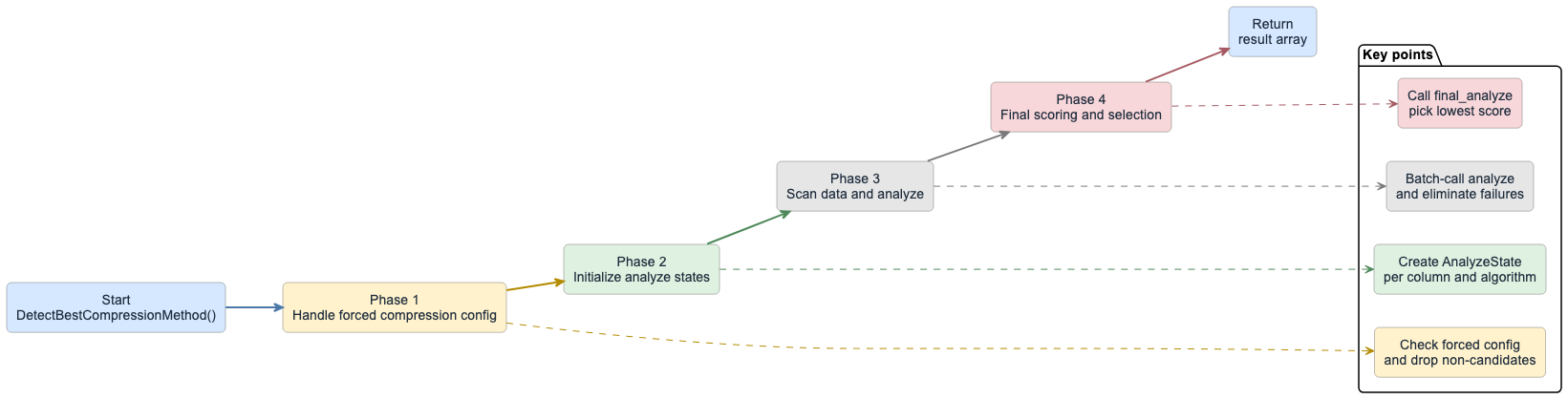 本文为《DuckDB技术解读》系列第一篇,聚焦数据压缩与归档。业务增长使存储开销和历史数据可分析性成瓶颈,AliSQL引入DuckDB作存储引擎,提升压缩与扫描能力。介绍DuckDB压缩过程,以列数据为单位,先扫描分析选最佳算法,后按算法压缩写入。其压缩算法因数据类型而异,列式存储与自适应编码能显著降成本。对比InnoDB、HBase等系统,DuckDB落盘体积最小。AliSQL对DuckDB压缩链路优化,提升吞吐与并发效率,还支持存储层硬件压缩。DuckDB优势源于“列式组织 + 自适应算法选择”,AliSQL在此基础上进一步优化,为历史数据归档提供低存储占用和可控成本。