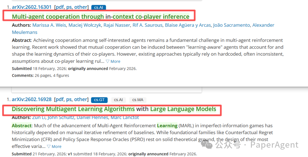 2026年2月,谷歌发表2篇Multi - Agent协作学习新论文。第一篇探讨多智能体强化学习中自利益智能体协作问题,传统方法有均衡选择和环境非平稳性难题。论文提出上下文共玩家推理,验证从多样性到协作的因果链,得出上下文学习、混合训练池和剥削脆弱性的结论,还提出PPI算法。第二篇提出用AlphaEvolve自动发现多智能体学习算法,结合LLM代码生成与进化算法。发现VAD - CFR和SHOR - PSRO,经测试在多个游戏中达或超SOTA。两篇论文分别解决协作涌现和算法自动发现问题,有不同关键洞察、方法范式及实践意义。
