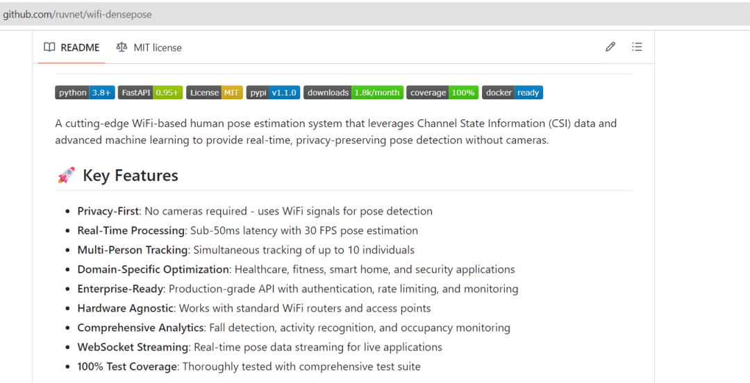 2026年登上趋势榜的wifi - densepose项目,通过分析室内WiFi信号感知人体位置和姿态,无需摄像头。它用CSI数据替代RSSI,利用AI神经网络算法将无线信号“翻译”成视觉元素,实现模态转换、DensePose整合和实时处理,还可通过多路由器提高精度。但从代码看,核心功能未实现,有大量mock数据,无数据集,硬件接口和CSI解析器也无实际功能,该项目可能只是基于论文让AI复现的工程原型壳子。
